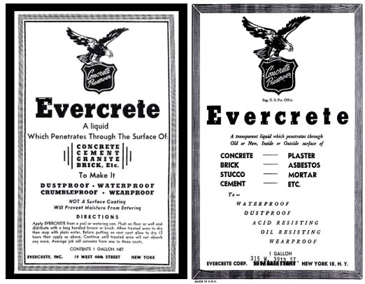 product Our slogan, "Evercrete--Concrete Solutions That Stand the Test of Time", stands as a testament to our products, with many "Evercrete-treated" structures still standing today. The Evercrete brand name is over 60 years old and enjoys a long history with its foundation set firmly in the United States. The Evercrete brand started with a family business in the late 1930's in New York, registering its first trademark in 1942 to sell concrete preservers. In recent years, with advancements in technology, and some of the world's leading industry specialists, we have developed a new generation of highly cost effective coatings far superior to any on the market today. As a result, the name Evercrete still marks the barrels of the world's leading concrete preserver that's environmentally friendly and All-American made. When people in the industry, from engineers to developers, think of the number-one concrete preserver, they think Evercrete and they should know. Evercrete today represents a name that can be trusted, with high standards of service and a commitment to our distributors and customers. They refer to our products as premium asset-protection.